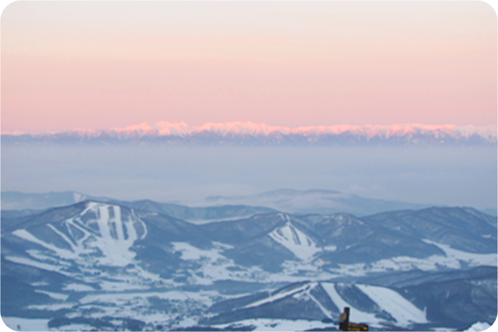 山頂から広がる大パノラマ。絶景とパウダースノーが待っています。